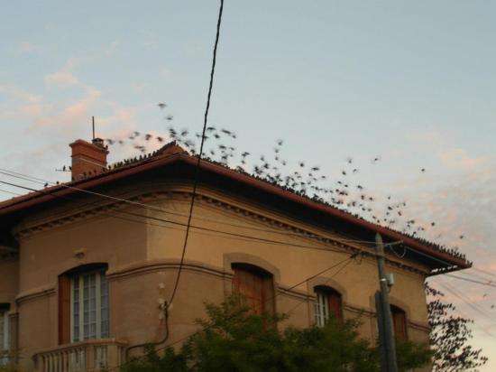 moi qui n'aime pas les oiseaux, regardez ce que j'ai découvert ce matin en sortant de chez moi...On se serait cru dans "les oiseaux"....