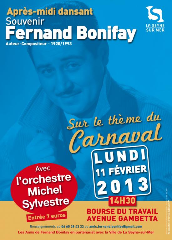 Voilà donc le premier après midi dansant des "Amis de Fernand Bonifay", dont le thème est le carnaval.Ce qui, bien sûr ne veut pas dire que vous serez obligé de vous déguiser...Mais moi, oui...Et je serais déguisée en...Ben, vous le verrez bien ! Nos amis de l'orchestre Michel Sylvestre seront bien sûr au grand complet pour le plaisir de tous.