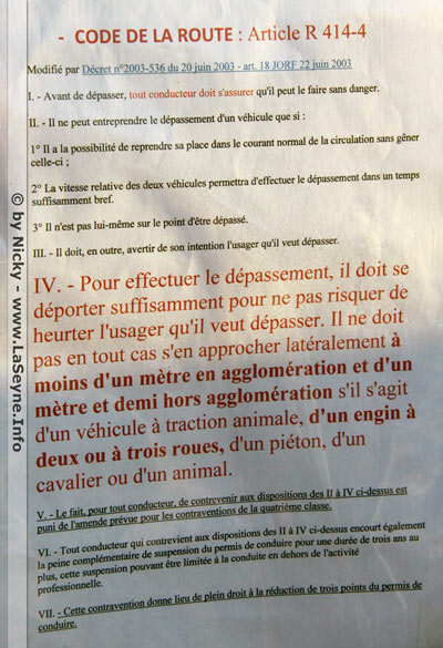 - 1 m de distance lors d'un dépassement par un véhicule