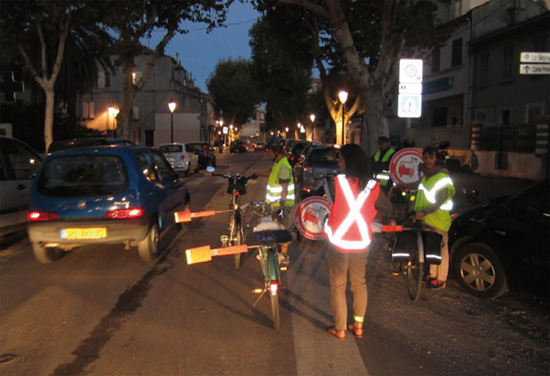 Au feu de l’intersection av Ivaldi / ch J. Ghibaudo, nous avons distribué des tracts « recommandations automobilistes /cyclistes mentionnant notamment la distance de dépassement » globalement très bien accueillis.
