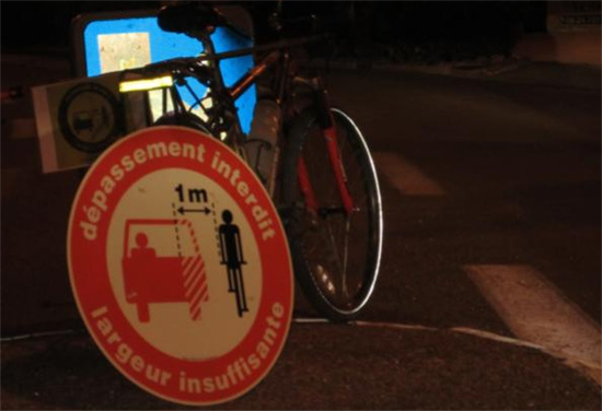Bonsoir, Le 12 octobre, nous n'étions que 8! Bonne nouvelle, 2 "nouvelles" Agnès et Nathalie ! Malchance, la sono nous a lâchés dès la rue Gambetta ! Le thème était: la distance de sécurité à respecter par les véhicules qui dépassent un cycliste en ville: 1 METRE