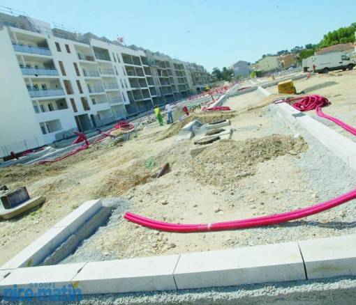 Photo : Laurent Martinat - Les 170 logements de la première tranche du projet «Porte Marine» devraient être livrés à la rentrée scolaire. D'ici quelques jours, les travaux des trois bâtiments composant la deuxième tranche vont débuter. Au total, près de 400 logements borderont cette nouvelle avenue en juin 2010.