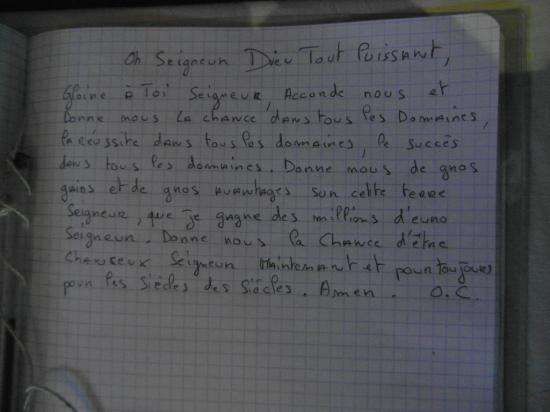 Photo d'un voeu dans la chapelle au sommet du Mont Saint Clair à Sète.