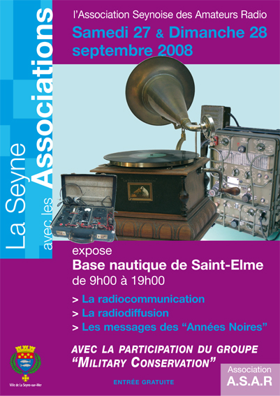 Le vernissage de l’exposition « La radiocommunication et la radiodiffusion » se tenant les samedi 27 et dimanche 28 septembre prochain à la Base nautique de Saint-Elme aura lieu le samedi 27 septembre prochain à 11 heures.