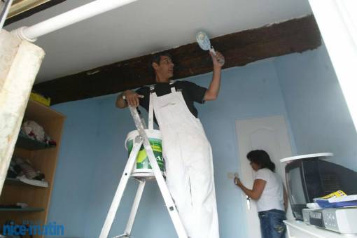 Photo : Rina Uzan - M. Melle, moniteur, du collectif hébergement varois aide les occupant d'un appartement du centre-ville à le rénover.
