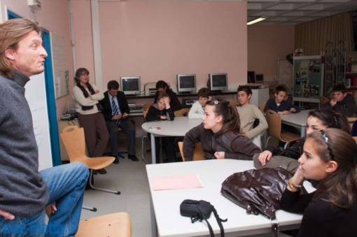 L'auteur est debout face aux élèves. Sur les visages, on devine les curieux, les bavards, les timides, les coquettes. Et déjà quelques lecteurs assidus.