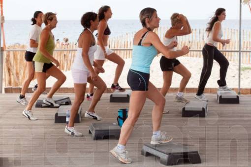 Le matin, c'est séance de step et « réveil musculaire », suivi de l'aquagym (ci-dessous)