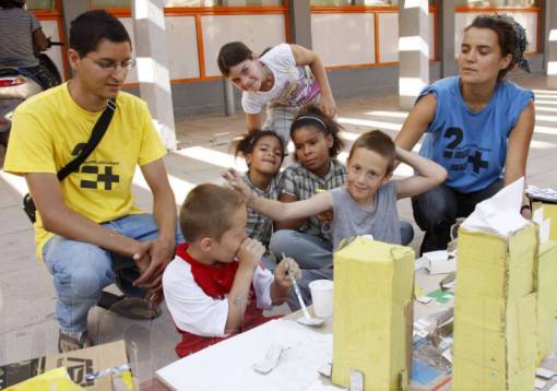 Jaune pour les bâtiments, vert pour les centres de loisirs et bleu à l'effigie des commerces : c'est le code-couleur qu'ont utilisé les petits débrouillards lors de la construction des maquettes représentant leurs cités. « Ces maquettes sont importantes pour les enfants. Aujourd'hui, ils vont pouvoir parler de leur quartier entre eux en les prenant comme support », déclare Mickaël, un des six animateurs de l'opération « Cités débrouillardes ».