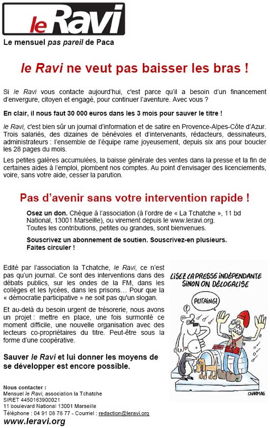 Le Ravi ne veut pas baisser les bras ! – Appel à souscription