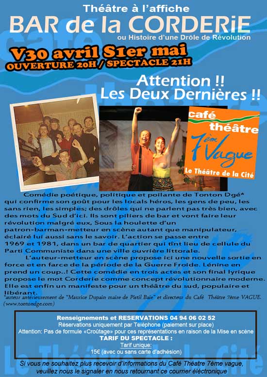 Dernières représentations de "Bar de la Corderie"