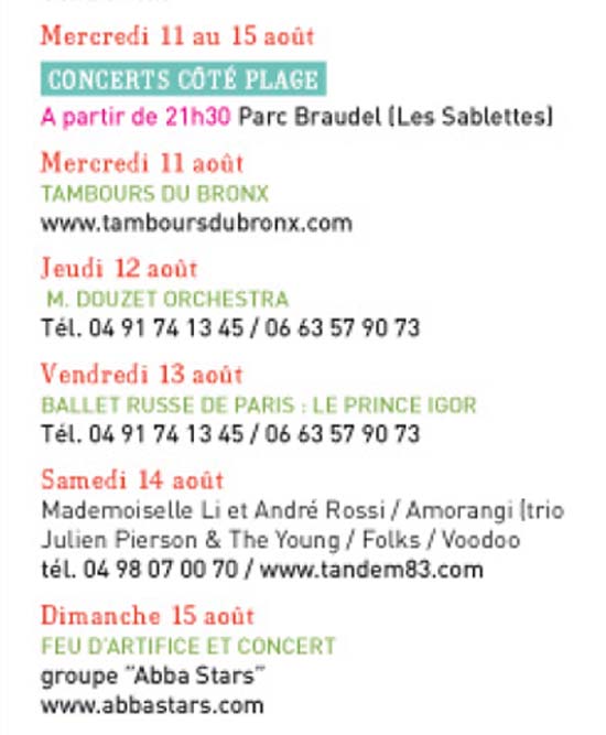 Concerts - Côté Plage du 11 au 15 Août 2010 - 21h30 aux Sablettes