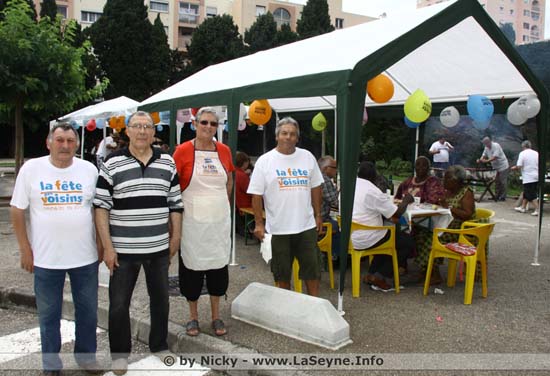 Mr Gabela : j’attendais cette question. Effectivement, ce fut le cas de la première fête, « l’auberge espagnole », mais nous nous sommes aperçus que chacun apportait la même chose, et qu’il y avait, en fin de compte beaucoup de restes qu’il fallait, à la fin, répartir entre les gens et chacun repartait avec ce qu’il avait emmené ou presque. Alors, nous nous sommes décidés pour un menu établi à l’avance, un repas du dimanche à midi et une participation financière de chacun, depuis tout le monde est content. Nous diversifions, une année la paella, une autre le couscous, cette année, vous le voyez, c’est un repas grillades au barbecue. Bien sûr, cela implique que certains d’entre nous s’investissent plus que d’autres, mais chacun emmène sa bonne humeur, et tout va pour le mieux.
