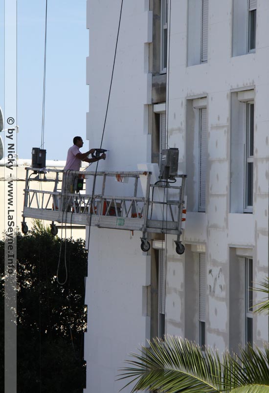La rénovation du Mont des Oiseaux avance. Pour éviter les déperditions de chaleur, on emballe nos immeubles comme des glaces Miko dans du polystyrène. Cet aménagement entre dans le cadre d'un programme de travaux bénéficiant d'un éco-label.