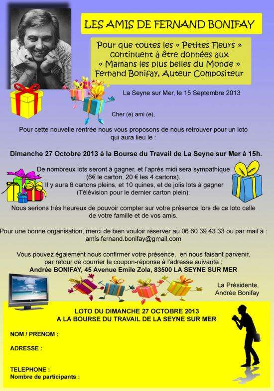 En ce qui concerne "les Amis de Fernand Bonifay", notre première rencontre sera le repas du 23 Septembre à midi au Restaurant l'Hacienda, à Janas ou nous nous retrouverons autour d'un sympathique méchoui (pour plus de renseignements appelez moi).
