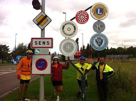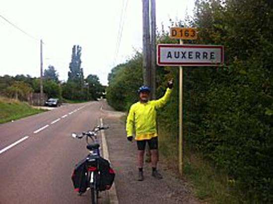 En l'absence du maire Jean-Yves Caullet, c'est Roland Enes, adjoint au maire d'Avallon, vice-président du Conseil de Surveillance de l'hôpital de la ville, qui nous a accueillis aujourd'hui en sa commune bourguignonne (muni de ravitaillement sous forme de vin de Chablis qui devra attendre la fin de notre épreuve sportive pour être apprécié), après un dur trajet fait de côtes raides et de sympathiques descentes, entrecoupé comme chaque jour de réponses à la presse, et démarré tôt à Arnay-le-Duc avec une température de... 6°C ! Ça incite à pédaler vite, croyez-moi !
