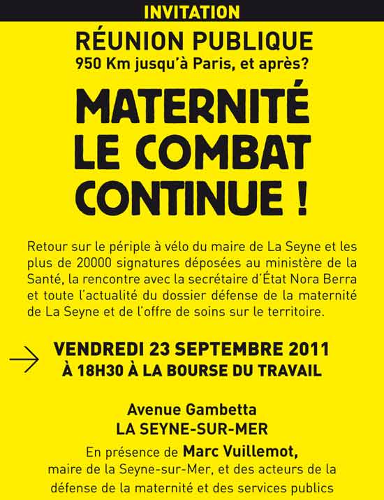 Après la fermeture de la maternité de La Seyne, les maternités, publiques ou privées, seront toutes à l'est (2) de l'agglomération. Le maire Marc Vuillemot estime qu'on a pris en compte « la géographie sur la carte, mais pas une géographie vivante. Toulon est entre mer et montagne. Avec de gros chantiers : le second tube, le transport en commun en site propre, le goulet de l'autoroute, la construction de l'école d'ingénieurs. »