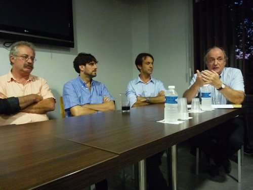 Le Dr Jacques Petit (à droite) , à l'initiative de la réunion, jeudi soir, a pris position contre la fusion des maternités seynoises et toulonnaises. «Il y aura bientôt trois maternités pour toute l'agglomération, et toutes géographiquement à l'est. C'est une folie. » Photo: Sonia Bonnin