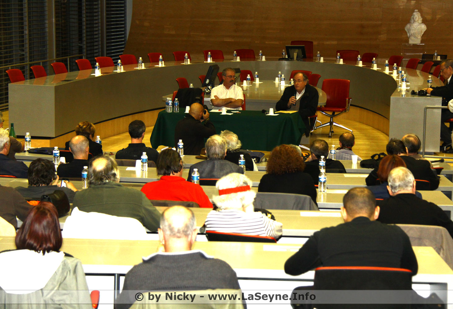 Voilà, c'est fait. Après être passés aux différents tests (je vous rassure, il n'y a pas eu de fouille au corps) de la sécurité, nous sommes arrivés tous les trois à 10 h 36 à l'hôpital Sainte-Musse d'où nous vous envoyons cette carte postale en quasi direct. Nous attendons l'hôte de Matignon qui vient inaugurer cette bâtisse. Il recevra la visite de Marc Vuillemot qui ne vient pas contester le nouvel hôpital, mais lui rappeler la nécessité pour la Seyne de conserver sa maternité. A bientôt