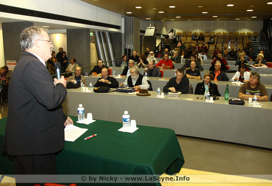 Le Docteur Petit prenant la parole aux cotés de Marc Vuillemot, le 02 novembre 2011.