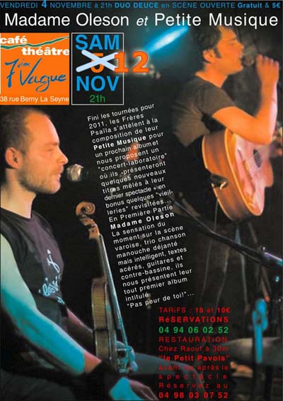 Petite Musique + Mme Oleson samedi à La Seyne!