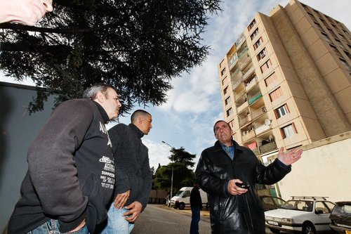 Le directeur de l'office HLM, Joël Canapa (à droite) s'est rendu dans le quartier où plusieurs locataires lui ont fait part de leurs nombreuses doléances. (Photo: Dominique Leriche)