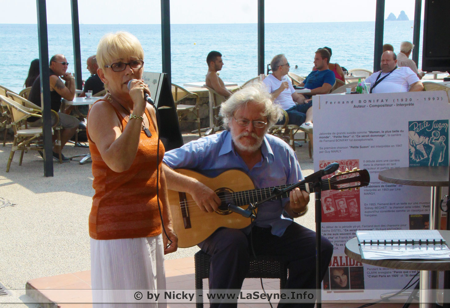 Voici quelques jours, sur la plage des sablettes, Andrée Bonifay réunissait spectateurs et artistes locaux, ceux-là mêmes qui, aux cours des mois passés, ont voulu rendre hommage à son cousin, l’auteur de tant de belles paroles mises en musique par des compositeurs illustres tant nationaux qu’internationaux, et interprétées, depuis les années 50, par des chanteurs et chanteuses célèbres s’il en fut