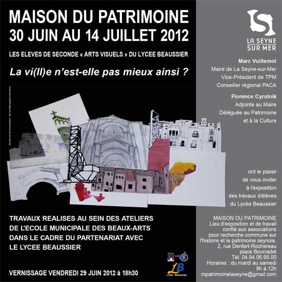 Expo du 30 Juin au 14 Juillet 2012 Vernissage ce Vendredi 29 Juin à 18h30à la Maison du Patrimoine - Place Bourradet