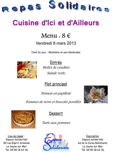 Menu du 8/03/2013 à l'Espace Solidarités