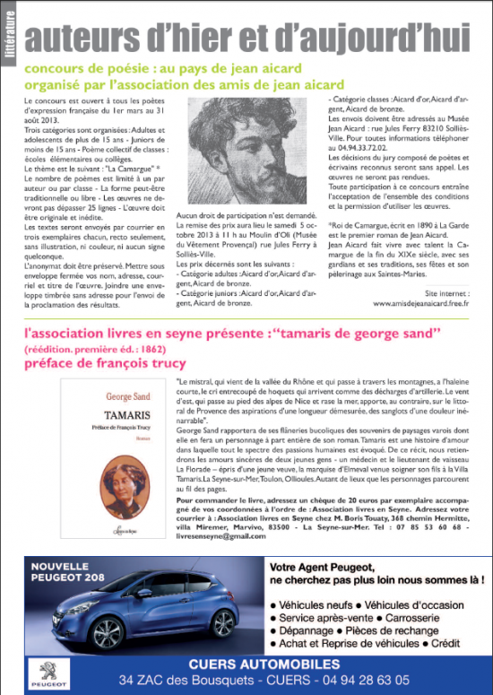 Par ailleurs, "Le Voyage dit du Midi" (journal de George Sand écrit lors de son séjour à Tamaris) complémentaire du premier est toujours en vente au prix de 23€ (franco de port) ou de 20€ si vous souhaitez l'acquérir en même temps que « Tamaris ».