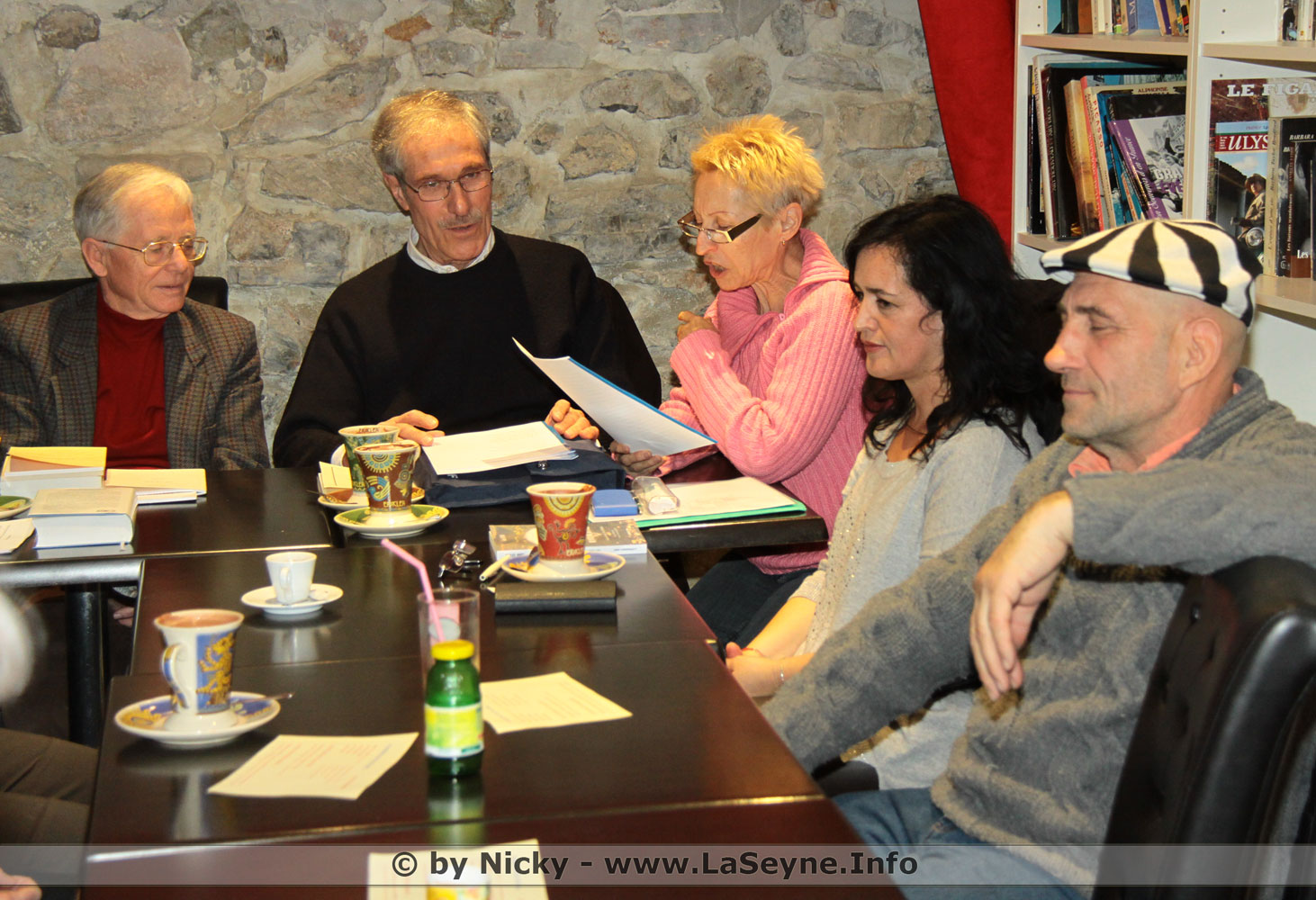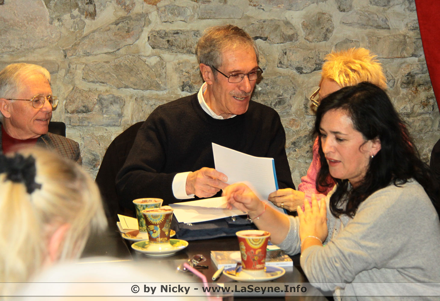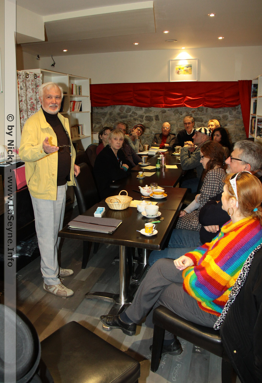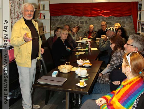 Autour d’une longue table, outre des habitués des manifestations (Claude Iconomou, Andrée Bonifay, Serge Beaudau), on y retrouvait des poétesses et poètes locaux : Robert Landry, Véronique Adam, Paulette Laforest, France Vigneaux, Yves Vanel, Lucienne Annot, Richard Morel, Liliane Cesari. J’en oublie certainement, on me le pardonnera.