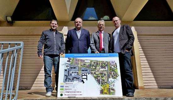 Jean-Luc Bruno, vice-président de l'office HLM Terres du Sud habitat, Christian Bianchi, adjoint au quartier Nord, Pierre de Riberolles, directeur du GIP Nouvelle Seyne, et Rodolphe Guyon, chargé de mission Gestion urbaine de proximité, invitent la population à participer, jeudi, à la réunion publique (photo:Ay. B.)