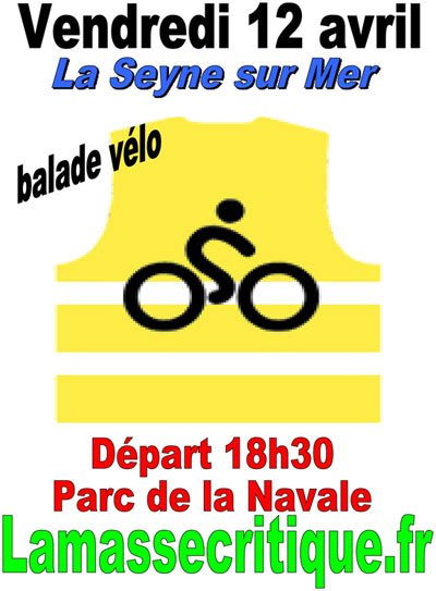 Une balade à vélo pour tous, vendredi 12 avril 2013 à La Seyne avec LA MASSE CRITIQUE