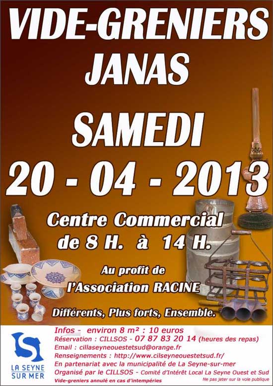 Le Comité d'Intérêt Local de la Seyne Ouest et Sud organise un vide-greniers, dont le droit de participation demandé à chaque exposant non professionnel sera reversé au profit de l'Association RACINE