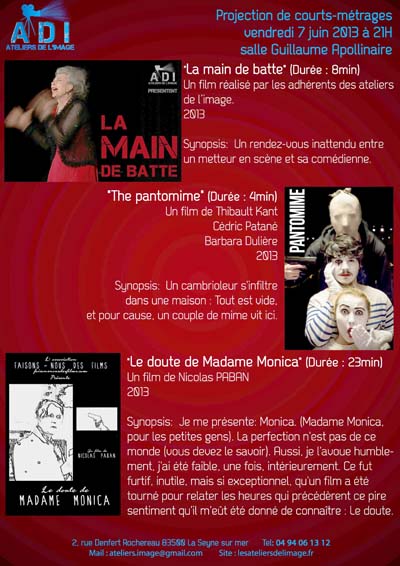 Projection de courts métrages Vendredi 7 Juin 2013 - La Seyne sur Mer - Salle Guillaume Apollinaire à 21 H