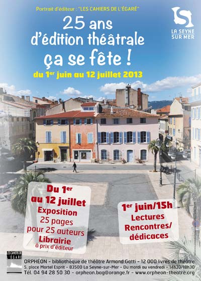 A l'occasion des 25 ans des « Cahiers de l'égaré », la bibliothèque de théâtre « Armand Gatti » organise un après-midi de lectures, rencontres, dédicaces sur la place Martel Esprit samedi 1er juin à partir de 15 heures.