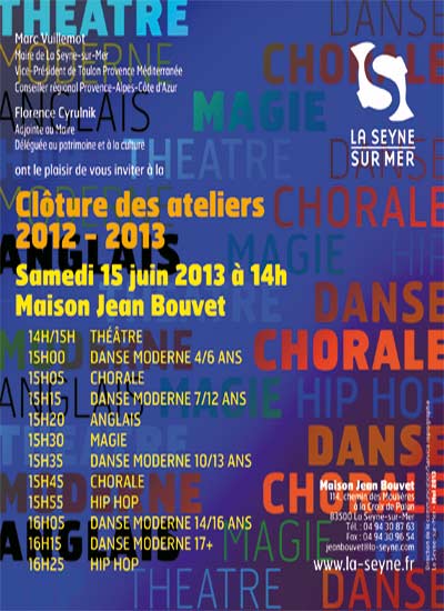 Rendez-vous est fixé à la Maison Jean Bouvet, située 114, chemin des Moulières à la Croix de Palun pour la Clôture des ateliers 2012 - 2013 ...