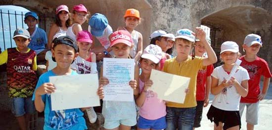 Jeu de piste à la «Fort Boyard» dans les remparts de Balaguier : les enfants ont cherché des indices et découvert de nombreuses anecdotes sur l'époque médiévale (photo: Matthieu Cotterill)