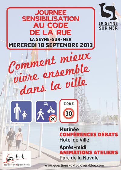 Concernant les nouvelles possibilités d’aménagements prévus pour tenter d'améliorer les choses : des zones piétonnes et zones 30 redéfinies, ainsi que la zone de rencontre : un nouveau dispositif déjà mis en place à La Seyne qui permet une cohabitation partagée entre tous ... Rendez-vous donc à La Seyne mercredi prochain pour décrypter et mettre en pratique le Code de la rue.