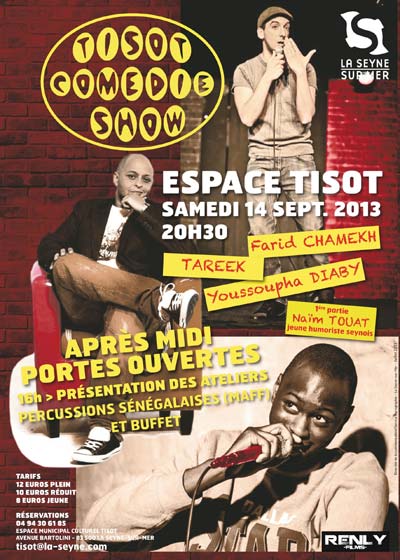 Ze « Tisot Comedy Show » ... Farid Chamekh, Tareek, Youssoupha Diaby ... Samedi 14 septembre 2013 à 20h30 à l'Espace Tisot – Av. Bartolini