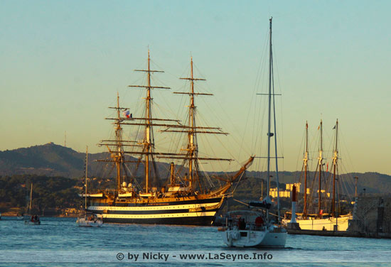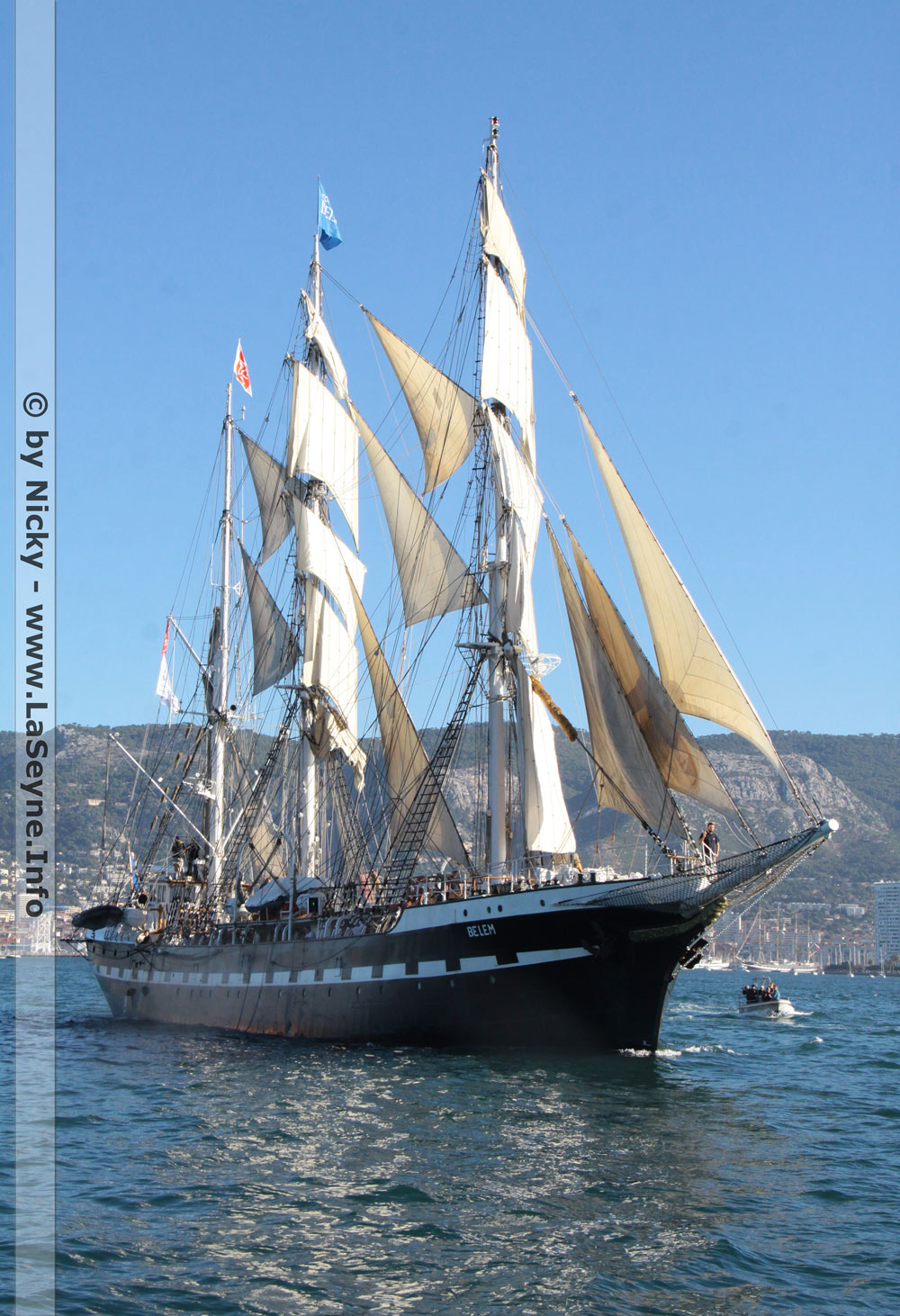 Dès 9h00, les premiers bateaux sont sortis de la grande passe de la rade de Toulon au milieu d'une nuée d'embarcations venues saluer les grands voiliers. C'est le Belem qui a ouvert la marche, en longeant les côtes, en direction de l'île de Porquerolles d'où le départ de la course devait être donné dans l'après-midi. Les 38 navires sont attendus à La Spezia.