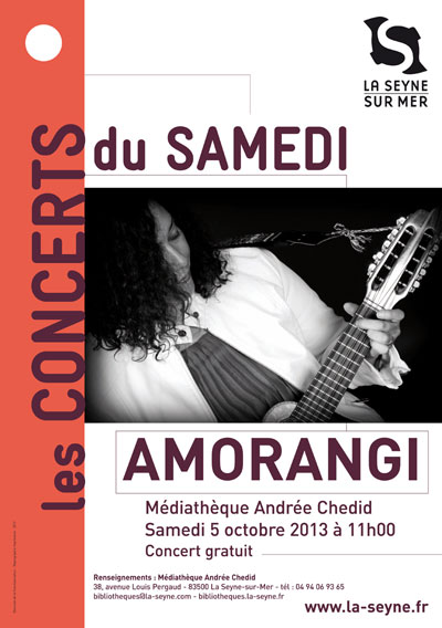 Les Seynois sont conviés à un concert du groupe Amorangi, samedi 5 octobre 2013 à 11 heures, à l'espace musique de la médiathèque Andrée Chedid, 38 avenue Louis Pergaud