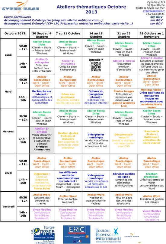 Programme Ateliers thématiques Octobre 2013 - Cyberbase - BIJ