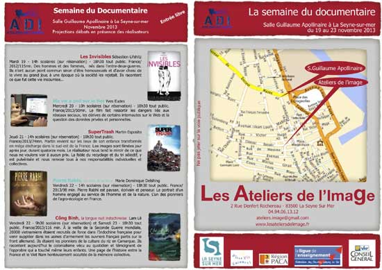 Les Ateliers de l'Image sont heureux de vous convier à la manifestation annuelle "Le mois du documentaire" que nous organisons du Mardi 19 au Samedi 23 Novembre 2013