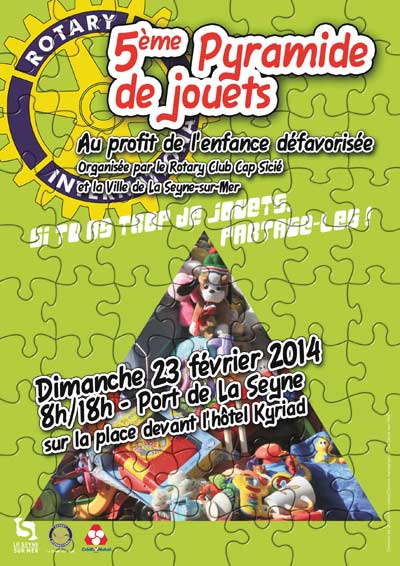 Dans le cadre des dons à l'enfance défavorisée, le Rotary club * et la Ville de La Seyne-sur-Mer organisent dimanche 23 février 2014 de 8 heures à 18 heures une 5e pyramide de jouets