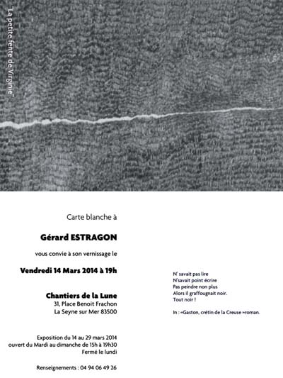 Carte blanche à Gérard ESTRAGON du 14 au 29 mars 2014 aux Chantiers de la Lune