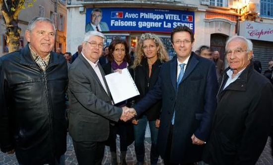 La liste "Unis pour faire gagner La Seyne" a été déposée à la dernière minute à la préfecture du Var à Toulon. Le député UMP Philippe Vitel sera la tête de liste devant Nathalie Bicais, Jean-Pierre Colin et Sandra Torres.