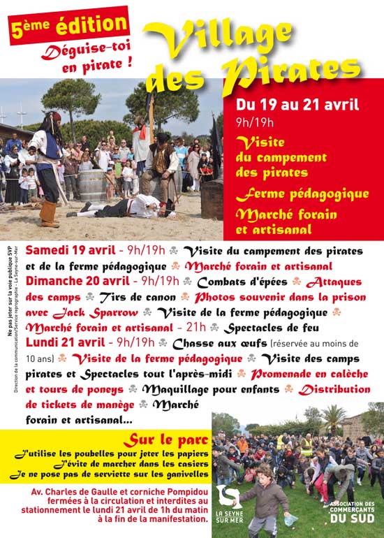 5e édition du village des pirates aux Parc Braudel – Les Sablettes. A partir du samedi 19 avril et la Chasse aux œufs lundi 21 avril 2014 à 11 heures