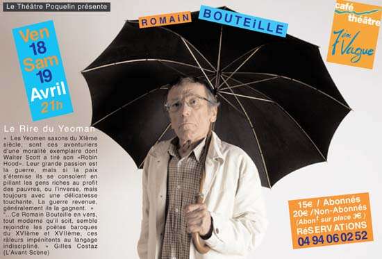Romain BOUTEILLE est ici présenté par la Cie du Théâtre Poquelin et par son directeur René Raybaud, ami de l'artiste-inventeur du mythique Café Théâtre de la Gare...
