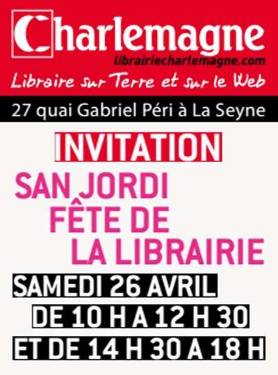 C’est devenu une tradition, depuis plusieurs années déjà,la librairie Charlemagne à La Seyne sur mer fête la Sant Jordi. Une occasion pour Nello et Fred de rassembler dans la convivialité et la bonne humeur des auteurs seynois. Un évènement qui permet aux lecteurs d’aller à leur rencontre.