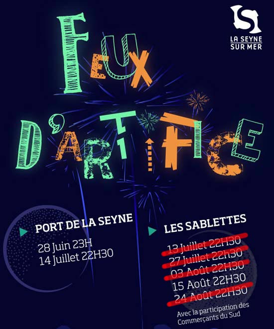 Seul le feu d'artifice du 14 juillet en centre-ville (organisé par la municipalité) et celui du 15 août tiré dans la baie du Lazaret (pris en charge par la Ville, le groupe Joa et l'Association des commerçants du Sud) sont maintenus.
